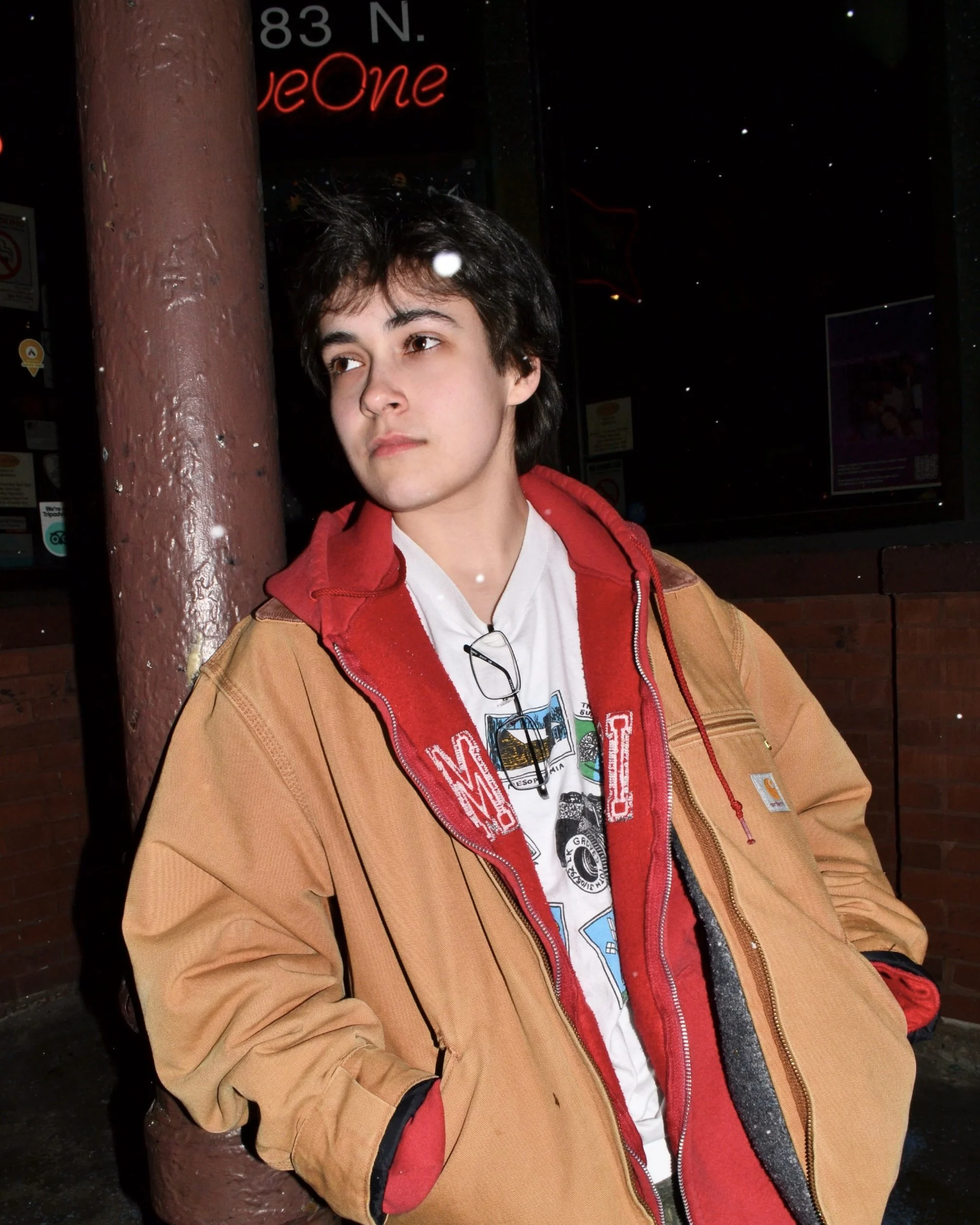 Skipping down my building’s stairs to the bar below, I got swallowed into the dim hum of people conversing, drinks sloshing, and the crack of pool balls colliding. My excitement filled the room. It was here I was meeting up with Evann McIntosh: a familiar friend and genius lyricist/musician.