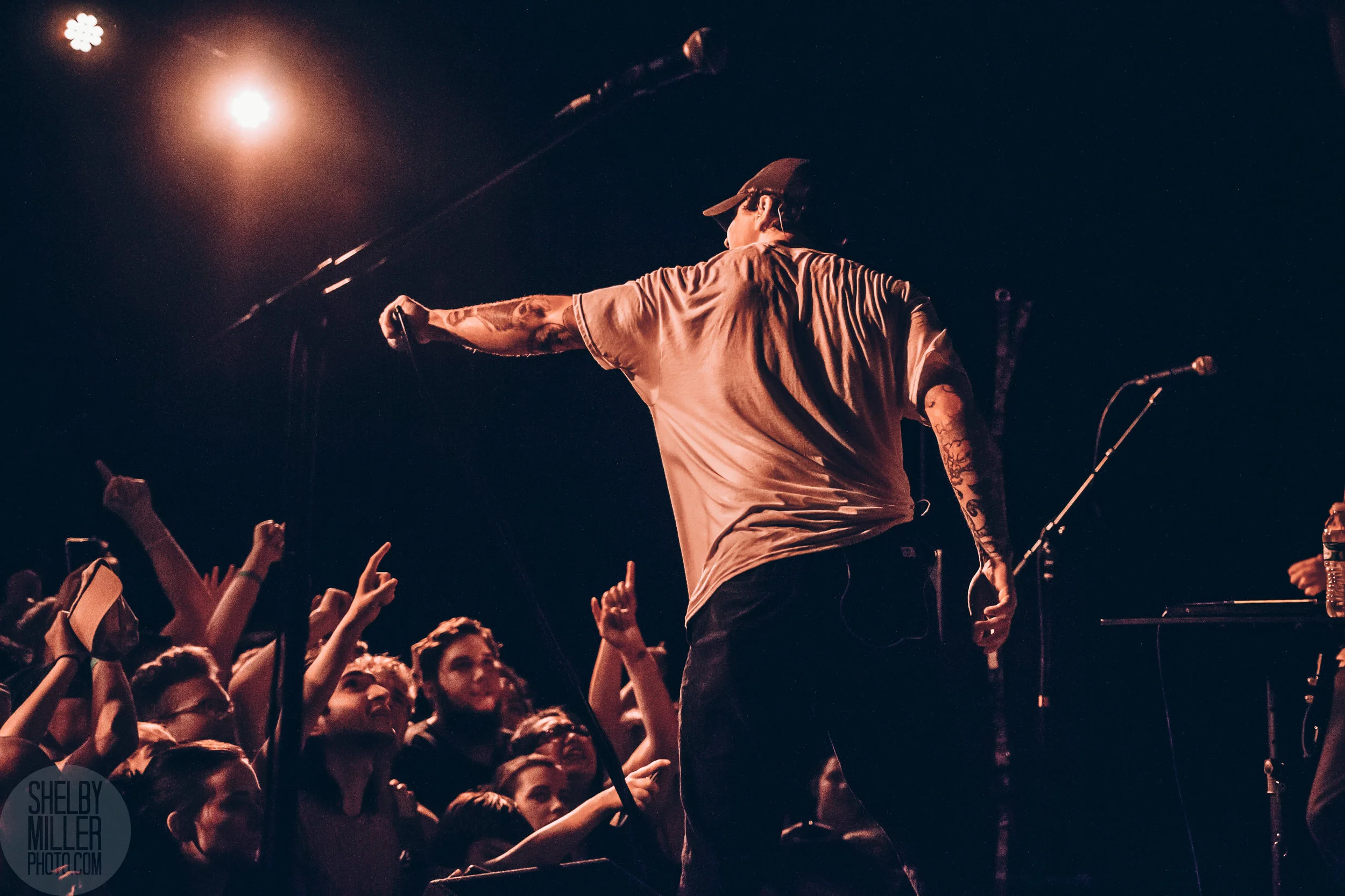 Before Basement even stepped on stage, the lighting in the room changed from a dull red to a bright blue, then dark. In the darkness, the audience members began chanting, waiting for the set to begin. The blue light returned as the band playing, and lasted until the end of the set. The crowd had the same energy and movement as they did with the previous act, but were much more spread out throughout the large room.