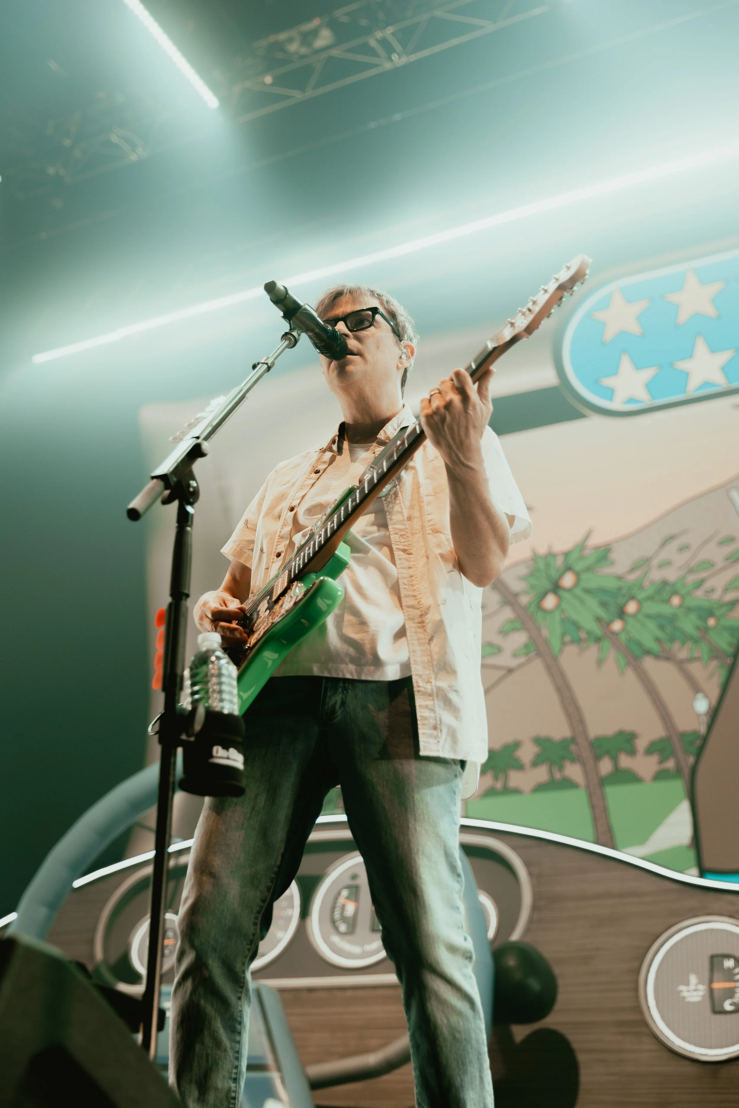 The stage was set as a camper van bringing along the sold out crowd on the ultimate indie rock roadtrip as the band performed a variety of songs from their discography accompanied by creative and captivating visuals. The energy was high throughout the night as they played fan favorites including ‘Beverly Hills’, ‘Say It Ain’t So’, and ‘Buddy Holly’ which had fans jumping up and down even in the very last row. Lead singer, Rivers Cuomo, mentioned how since their formation as a band, they’ve released 135 songs; so this tour he wants to play one song he never gets to play each night. The song for Dallas ended up being the more recently released ‘Do You Wanna Get High‘ which was a fun surprise for fans.